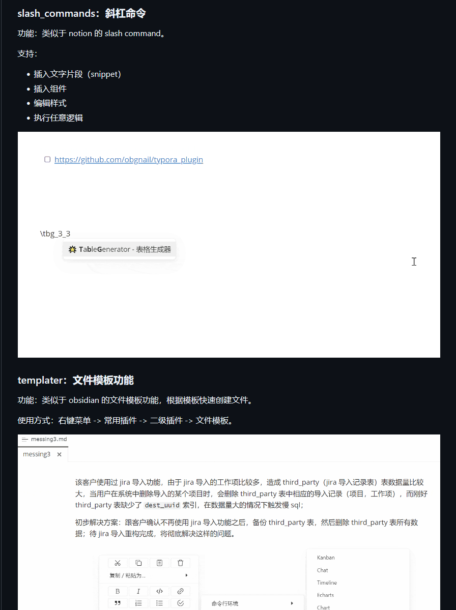 Typora uses: Template functionality and slash commands from the obgnail/typora_plugin